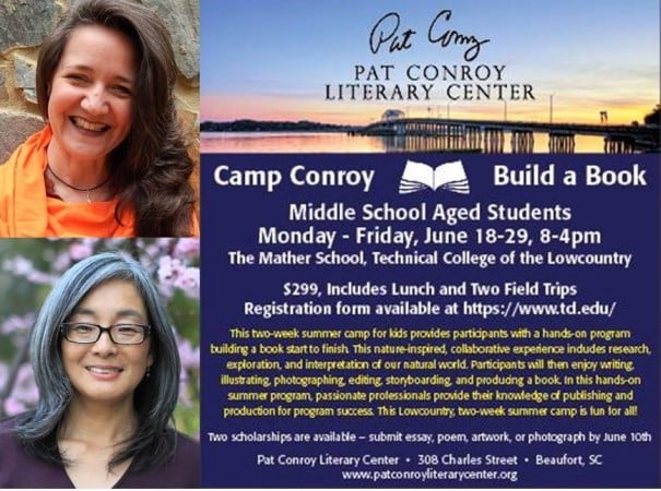 Camp Conroy is limited to 15 participants, and open to middle-school-aged students to rising high school sophomores. The $299 registration fee includes daily lunches and two field trips. Two scholarships are available; to apply, students should submit a sample of their work (essay, poem, artwork, or photograph) by June 10 to the Pat Conroy Literary Center, 308 Charles Street, Beaufort, SC 29902, ATTN: Camp Conroy. Camp registration forms are available online at www.td.edu or www.tinyurl.com/campconroy.